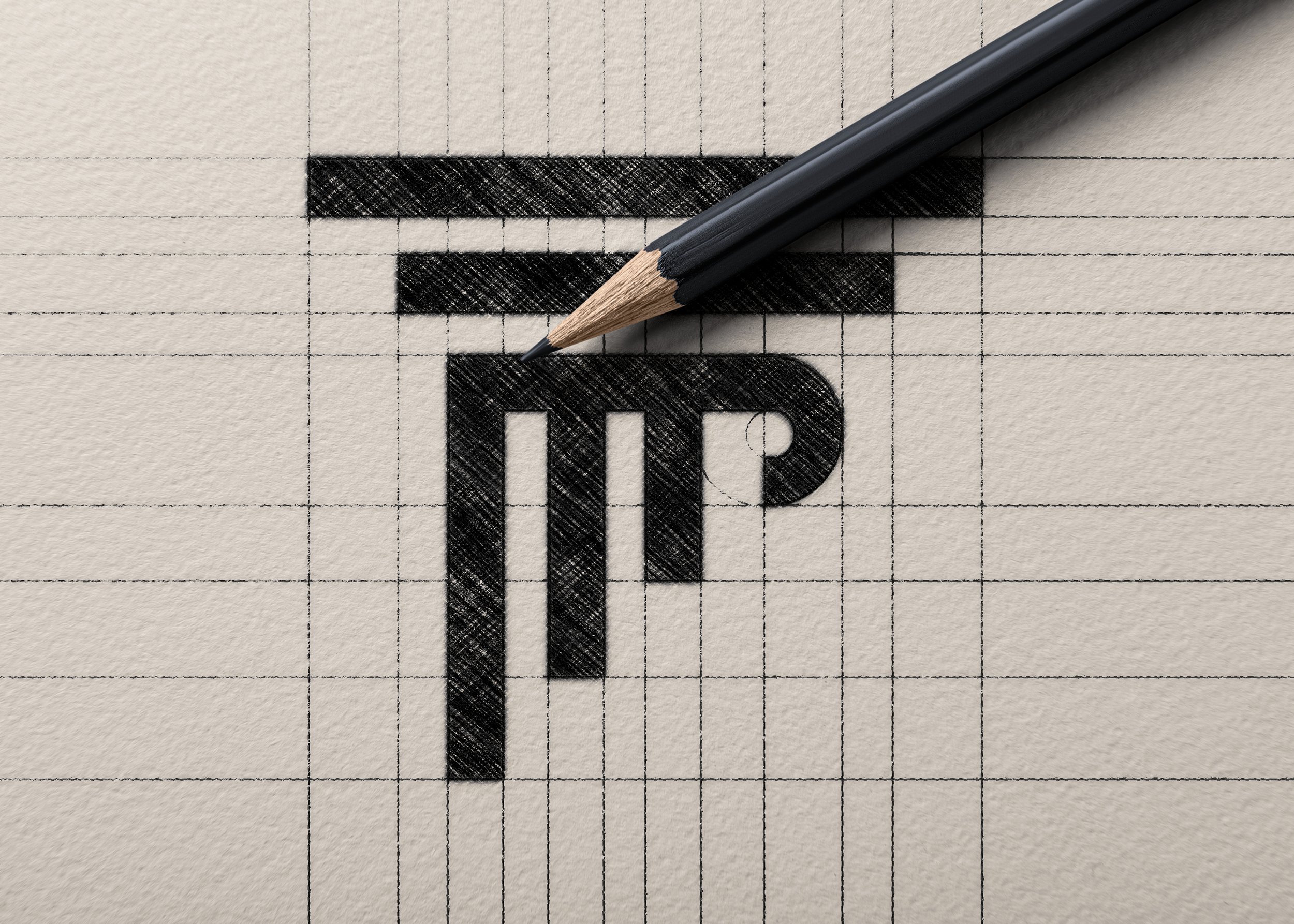 Inspired by classical elements, the logo combines a minimalist structure with the initials MP, forming a refined and symbolic mark.